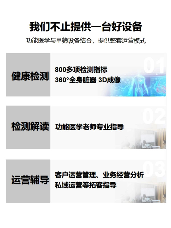 指標,并以3D成像模式直觀顯示。是健康檢測、健康評估、疾病篩查、健康監測、療效評估不可或缺的手段。適用于
