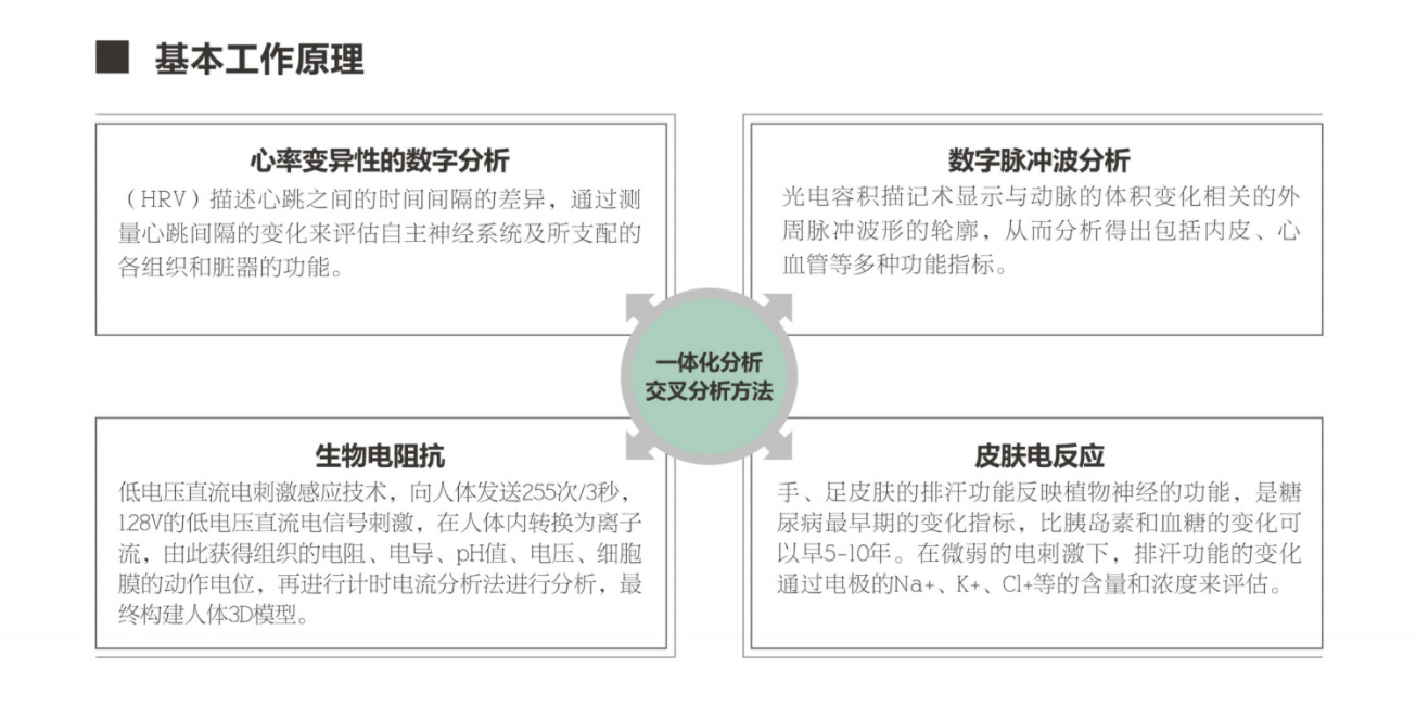 反應分析、數字脈波分析、血流動力學評估和自主神經系統評估等版塊組成的強大的智能健康管理集成系統。