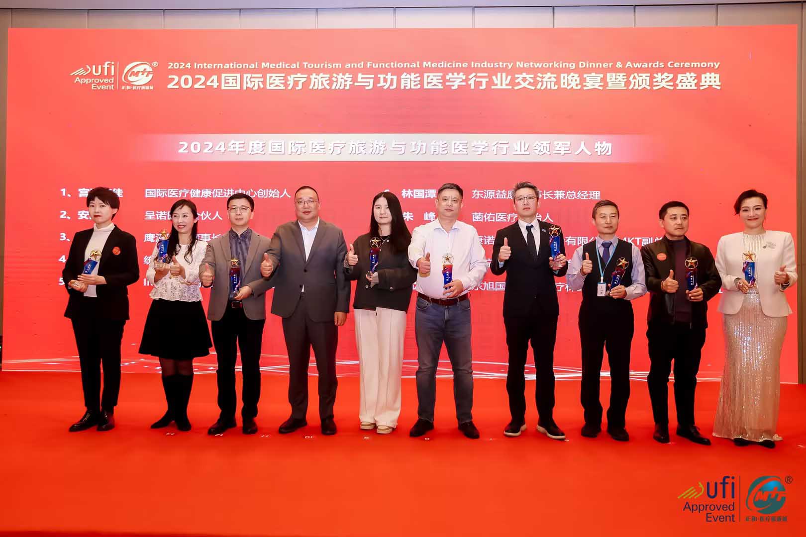 展會同期還舉辦了2024國際醫療旅游與功能醫學行業交流晚宴暨頒獎盛典,經過嚴格的評審和篩選程序,組委會最終評定出了一批在各自專業領域表現突出的獲獎者,包括“國際醫院獎”、“服務機構獎、“細分行業獎”和“行業領軍人物”等,鷹演醫學董事長張畇蓁女士榮獲行業領軍人物獎。這些獲獎者不僅在醫療技術和服務質量上達到了國際水平,還在推動醫療健康產業的創新和發展方面做出了重要貢獻,活動對于激勵行業創新和提高服務水平具有重要的促進作用。