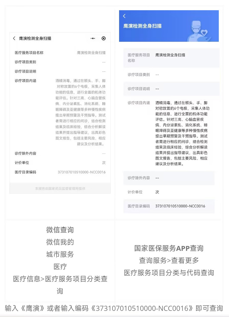 納入醫療目錄編碼后,鷹演檢測全身掃描將正式成為醫療體系中的一部分,為廣大用戶提供更加便捷、高效的健康檢測服務。這一舉措將極大地推動健康檢測領域的發展,提高醫療服務的整體質量和效率。